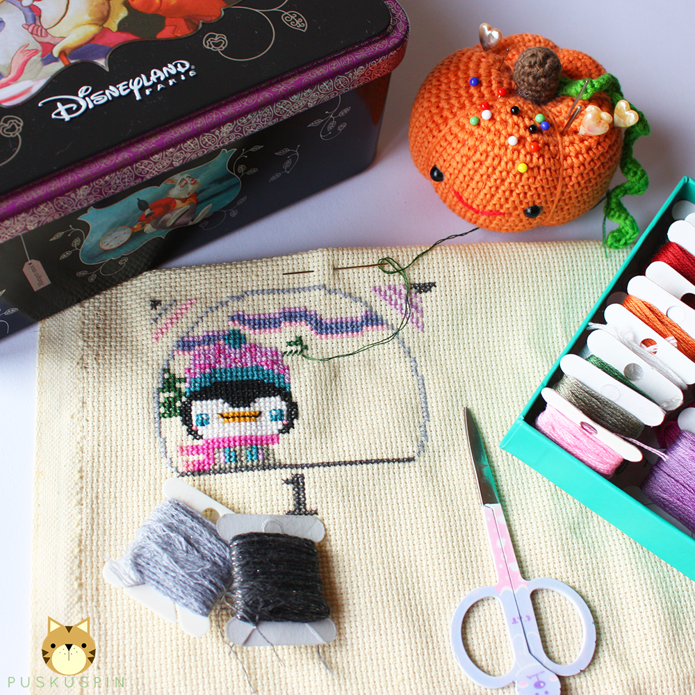 The frosted pumpkin stitchery", siempre los empiezo a tiempo para ir haciéndolos durante todo el año pero por una cosa o por otra acabo retrasándome. No me importa porque los voy acumulando en cajitas y cuando me apetece los saco y hago un poco. Sin prisas, disfrutándolos.